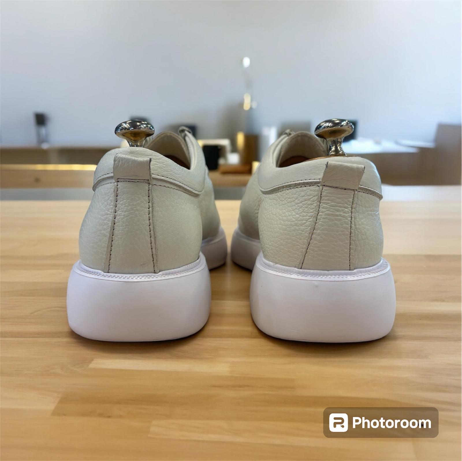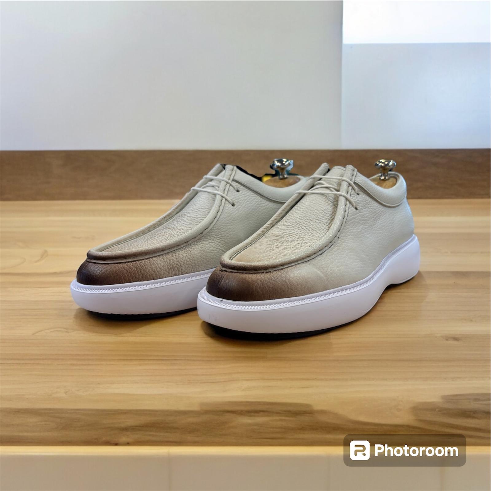% 100 GERÇEK DERİ EL YAPIMI SEZON CASUAL AYAKKABI İÇ VE DIŞ GERCEK DERİ. TAM KALIP RAHAT MODEL. KALIN EVA TABAN. Ürün Rengi: KREM