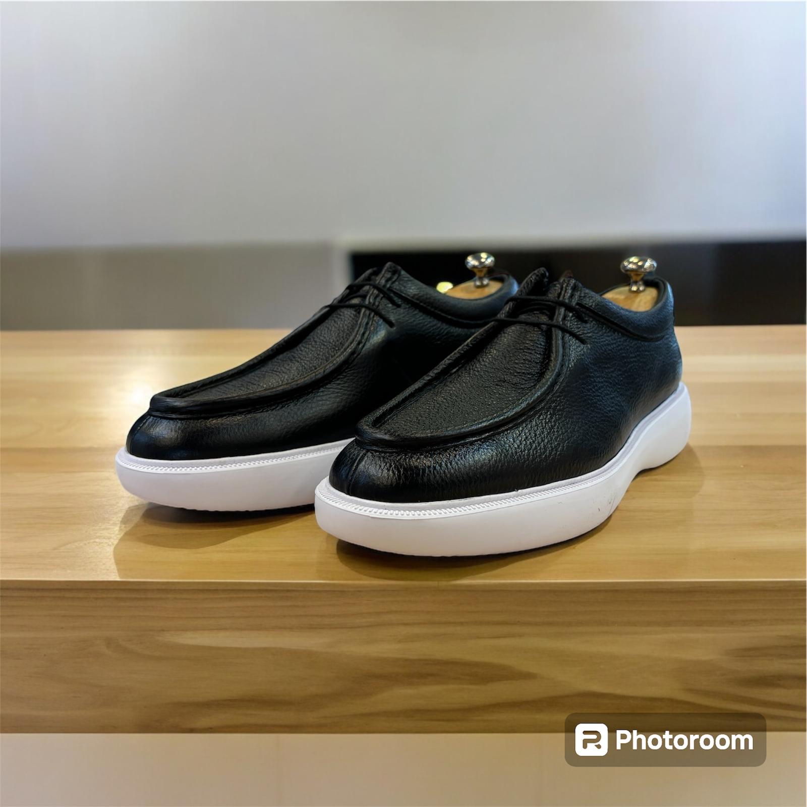% 100 GERÇEK DERİ EL YAPIMI SEZON CASUAL AYAKKABI İÇ VE DIŞ GERCEK DERİ. TAM KALIP RAHAT MODEL. KALIN EVA TABAN. Ürün Rengi: SİYAH BEYAZ
