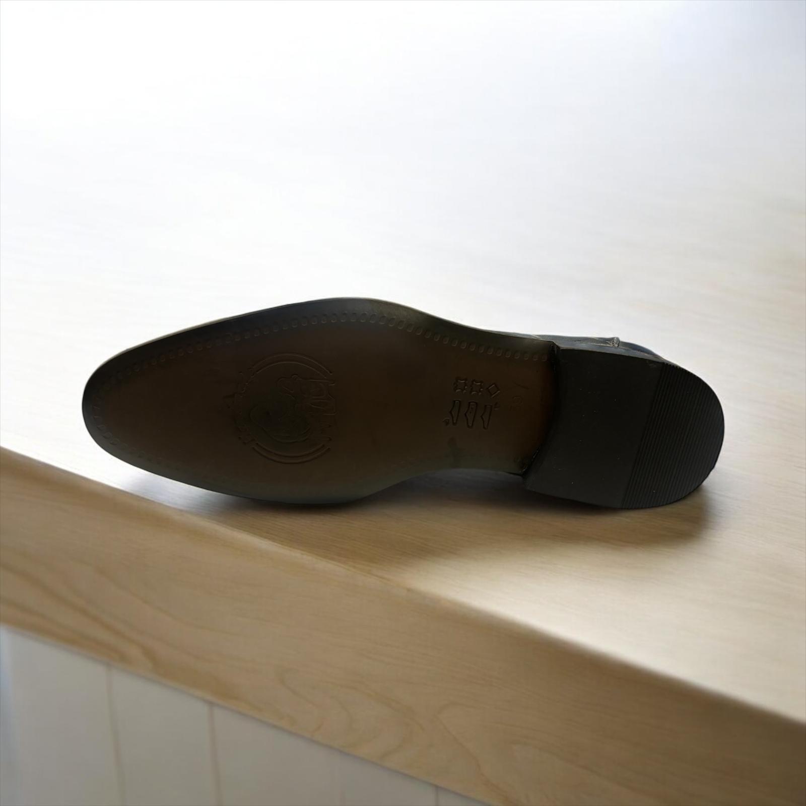 % 100 GERÇEK DERİ EL YAPIMI, AĞAÇ ÖKÇE NEOLİT TABAN KLASİK AYAKKABI. RENK : LACİVERT