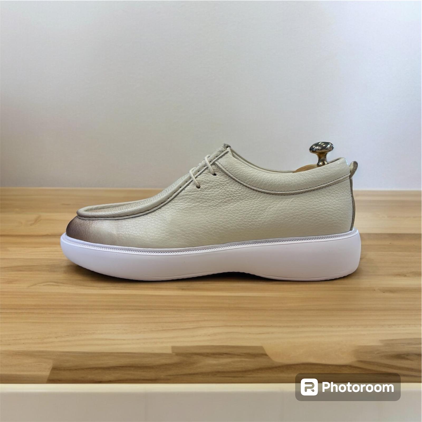 % 100 GERÇEK DERİ EL YAPIMI SEZON CASUAL AYAKKABI İÇ VE DIŞ GERCEK DERİ. TAM KALIP RAHAT MODEL. KALIN EVA TABAN. Ürün Rengi: KREM