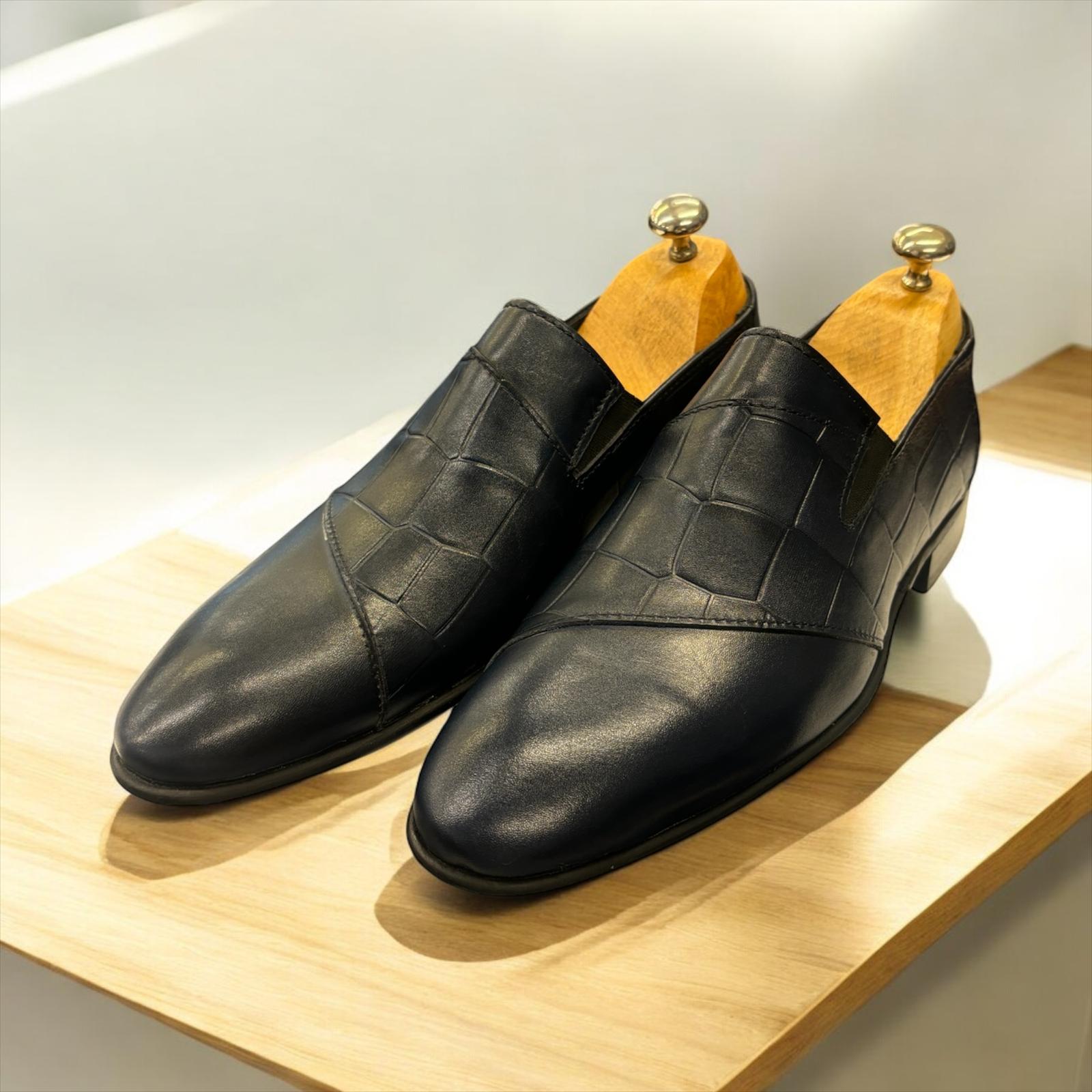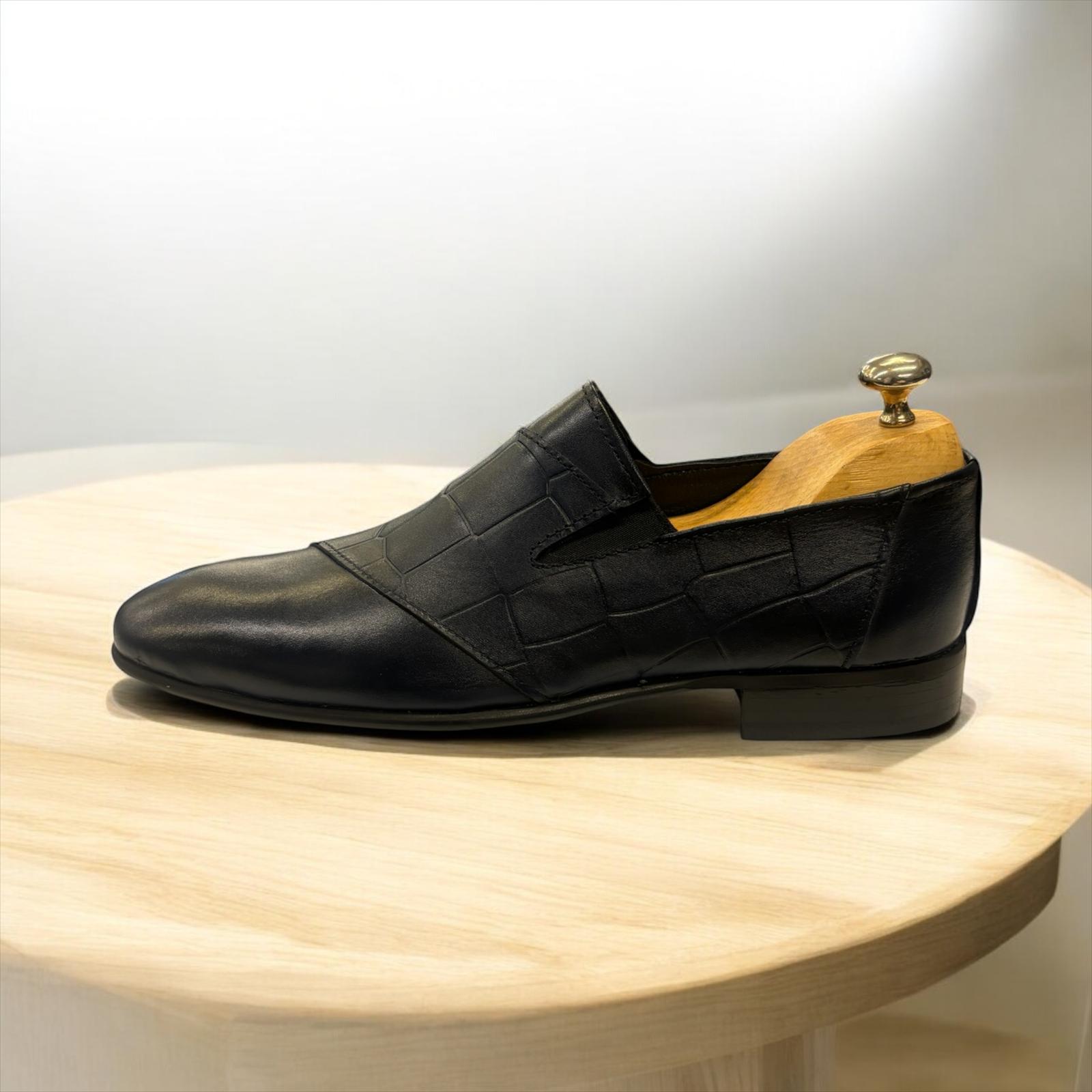 % 100 GERÇEK DERİ EL YAPIMI, AĞAÇ ÖKÇE NEOLİT TABAN KLASİK AYAKKABI. RENK : LACİVERT
